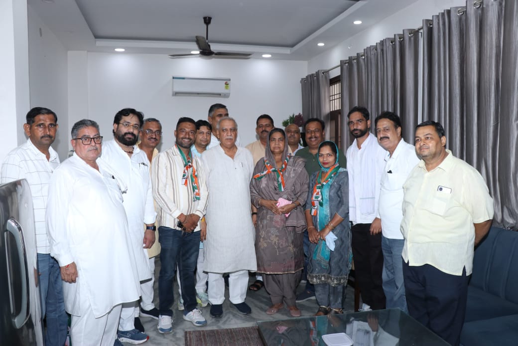 कुरुक्षेत्र । धर्मनगरी कुरुक्षेत्र में भाजपा को झटके पे झटका लगता जा रहा है। गत दिवस 8 पूर्व पार्षदों द्वारा भाजपा छोड़ कांग्रेस में शामिल होने के पश्चात आज वार्ड नंबर 4 की पूर्व पार्षद राज रानी धर्मपत्नी सुनील काजल अपने परिजनों लक्ष्मी देवी तथा अन्य समर्थकों के साथ कांग्रेस में शामिल हो गई। इसी प्रकार खेड़ी मारकंडा गांव के पूर्व सरपंच अंग्रेज सिंह ने अपने समर्थको नानकराम, सुखदेव सिंह, राजकुमार डिम्पी, ओमप्रकाश ढुल, जोगिंदर सिंह, कैप्टन गुरमेल सिंह, दरशु राम कश्यप, गुरदीप सिंह लक्की, महेंद्र सिंह, जोगिंदर लाल व संजीव कुमार सहित पूर्व मंत्री अशोक अरोड़ा के नेतृत्व में कांग्रेस की सदस्यता ग्रहण की। पूर्व सरपंच अंग्रेज सिंह की गिनती राज्यमंत्री सुभाष सुधा के विश्वासपात्र लोगों में होती है।