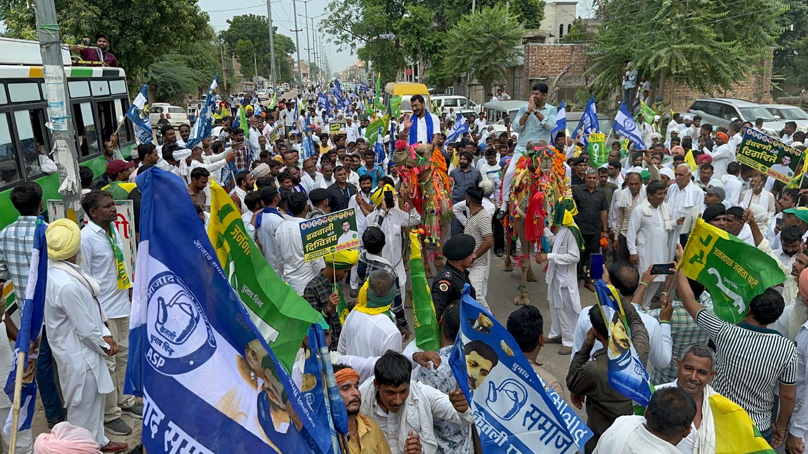 विशाल रोड शो के साथ डबवाली से दिग्विजय ने भरा पर्चा, ऊंट पर सवार दुष्यंत-चंद्रशेखर का जोरदार स्वागत