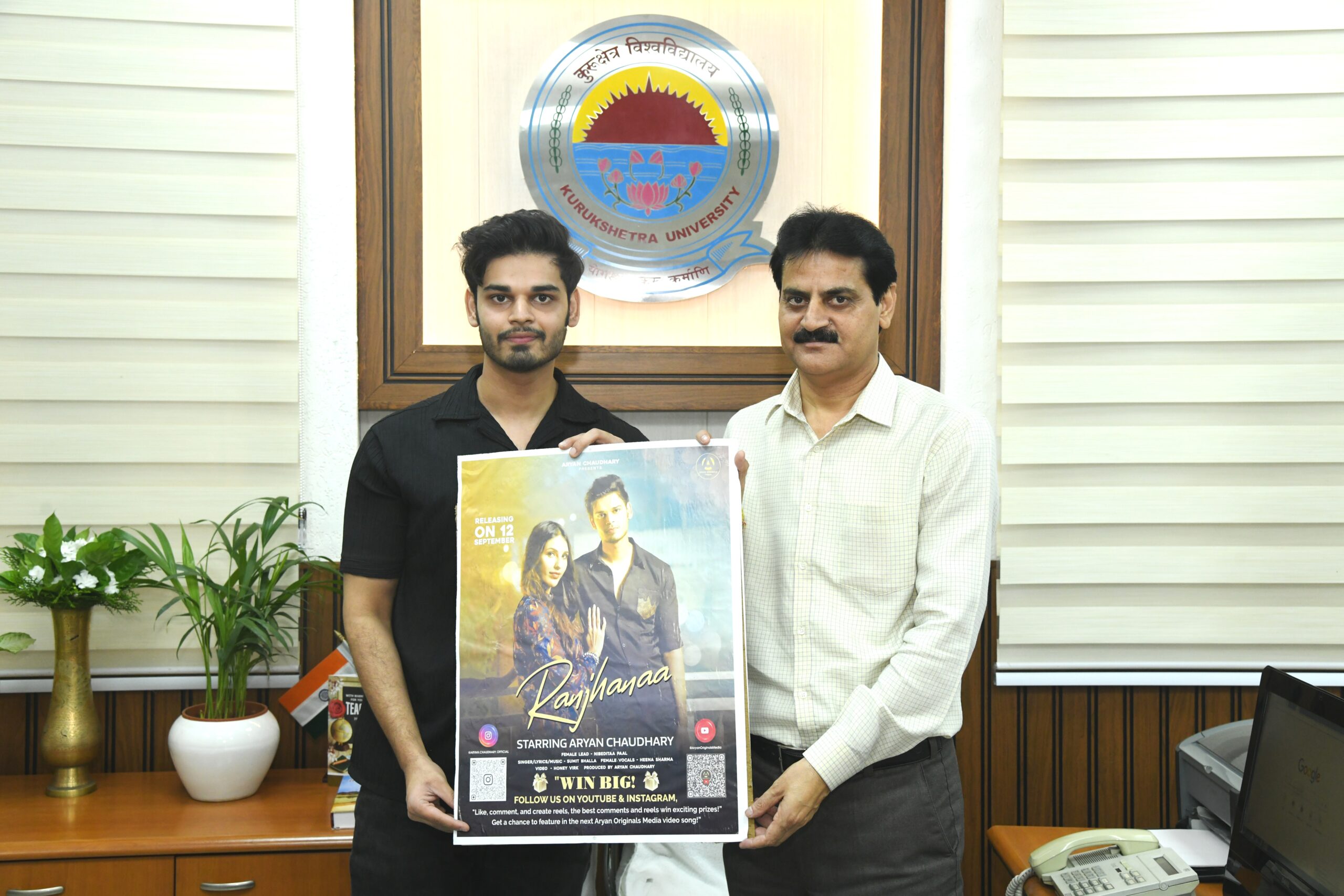 कुरुक्षेत्र। कुरुक्षेत्र विश्वविद्यालय के कुलसचिव प्रो. संजीव शर्मा ने गुरुवार को कुरुक्षेत्र विश्वविद्यालय के पूर्व छात्र आर्यन चौधरी के पहले गाने रांझणा के साथ आर्यन ओरिजिनल्स मीडिया को लॉन्च किया।