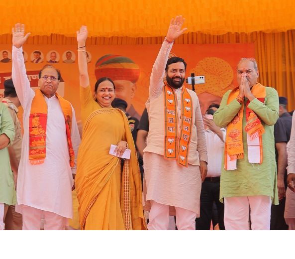 चंडीगढ़। हरियाणा के मुख्यमंत्री नायब सिंह सैनी ने भाजपा प्रत्याशी लक्ष्मण यादव के समर्थन में रेवाड़ी में जनआशीर्वाद रैली को संबोधित किया। मुख्यमंत्री ने कहा कि पूर्व सीएम भूपेंद्र सिंह हुड्डा बोलते हैं कि नायब सैनी घोषणाएं कर रहे हैं, मैं हुड्डा साहब को बता देना चाहता हूं कि मैने जो भी घोषणाएं की हैं उन्हें धरातल पर उतारा है। मुख्यमंत्री ने कहा कि मेरा 56 दिन का काम हुड्डा के 10 साल के शासन पर भारी है। रेवाड़ी पहुंचने पर जिला अध्यक्ष डा. वंदना पोपली, प्रत्याशी लक्षमण सिंह यादव, डा. बनवारी लाल ने मुख्यमंत्री का भव्य और जोरदार स्वागत किया।