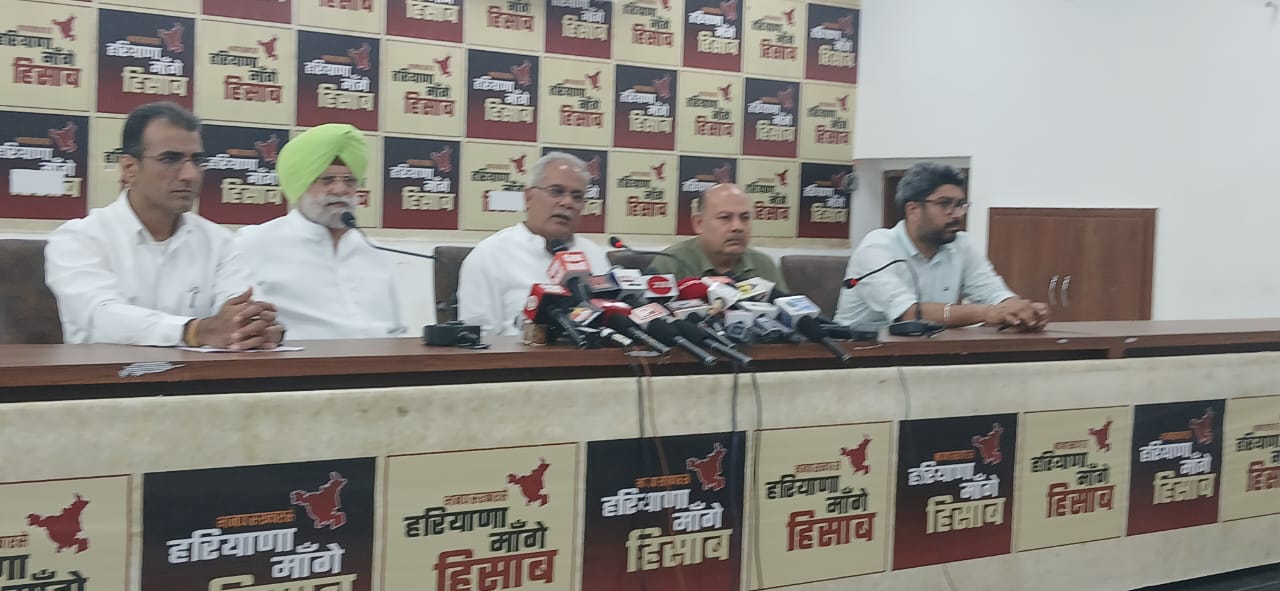 हरियाणा के चुनावी को लेकर भूपेश बघेल ने कहा कि आज सारे देश की नजरें हरियाणा के ऊपर लगी हुई हैं। क्योंकि हरियाणा के चुनावों ने सदा देश के चुनावों को एक नई दिशा दी है। भाजपा के शासन काल को लेकर उन्होंने कहा कि साढ़े नौ साल के बाद चुनावों से ठीक पहले मनोहर लाल खट्टर को कुर्सी से हटाना साबित करता है कि भाजपा को यहां अपनी हार स्पष्ट नजर आ रही है। मौजूदा सीएम सैनी के विषय में उन्होंने कहा कि शायद देश के इतिहास में यह पहली बार हुआ है कि कोई राज्य सरकार 6 महीने के अंदर एक सत्र भी नही बुला सकी। उन्होंने कहा कि नायब सिंह सैनी एक बार भी विधान सभा का सामना नहीं कर पाए।