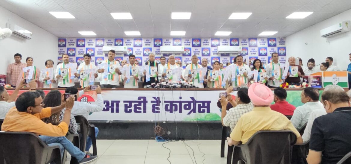चंडीगढ़ । हरियाणा प्रदेश कांग्रेस कमेटी ने शनिवार को कांग्रेस कार्यालय में अपना घोषणा पत्र ‘हाथ बदलेगा हालात’ जारी किया। घोषणा पत्र में पहले घोषित सात गारंटियों के साथ-साथ विस्तार से हर वर्ग के लिए हितकारी योजनाएं शामिल की गई हैं। घोषणापत्र में ऐलान किया गया है कि प्रदेश में 2 लाख पक्की भर्तियां पूरे भर्ती विधान से होंगी तो कौशल निगम के कर्मियों को भी वेतन बढ़ाकर समायोजित करने की नीति बनाई जाएगी। शहीद सैनिक के परिवार को देश में सबसे ज्यादा 2 करोड़ रुपए सम्मान राशि और सरकारी नौकरी का वादा भी घोषणापत्र में शामिल है। वहीं, रिटायर होकर आने वाले अग्निवीर को हरियाणा में नौकरियां दी जाएंगी। युवाओं को नशे से बचाने के लिए नशा मुक्ति हरियाणा आयोग व स्पेशल टास्क फोर्स बनेगी। खिलाड़ियों के लिए फिर से ‘पदक लाओ, पद पाओ’ की नीति लागू होगी, नौकरियों में खेल कोटे को फिर से बहाल किया जाएगा और खिलाड़ियों के लिए वजीफे की व्यवस्था की जाएगी।