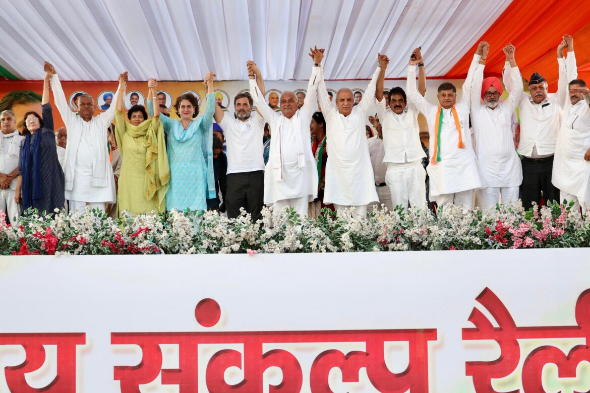 विजय संकल्प यात्रा लेकर थानेसर पहुंचे राहुल गांधी ने की जनसभा, कांग्रेस के लिए मांगे वोट
