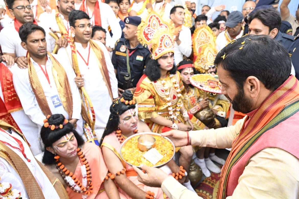 कुरुक्षेत्र/लाडवा । अक्तूबर हरियाणा के मुख्यमंत्री नायब सिंह सैनी ने विजयदशमी पर्व की सभी प्रदेशवासियों को शुभकामनाएं देते हुए उनके उज्जवल भविष्य की प्रभु श्री राम से कामना की। उन्होंने कहा कि सभी पर्व हम सबको मिलकर मनाने चाहिए इससे भाईचारा व प्रेम मजबूत होता है। मुख्यमंत्री नायब सिंह सैनी लाडवा में संगम मार्किट के पास विजयदशमी के पर्व पर आयोजित शोभायात्रा को झंडी दिखाने के उपरांत पत्रकारों से बातचीत कर रहे थे। इससे पहले उन्होंने पूजा-अर्चना करते हुए भगवान श्री राम का किरदार निभाने वाले विक्की मलिक व लक्षमण का किरदार निभाने वाले पंकज का राजतिलक भी किया। यहां पहुंचने पर जय भारत कला मंच संस्था के पदाधिकारियों ने मुख्यमंत्री को भगवान श्री राम की प्रतिमा देकर उनका अभिनंदन किया।