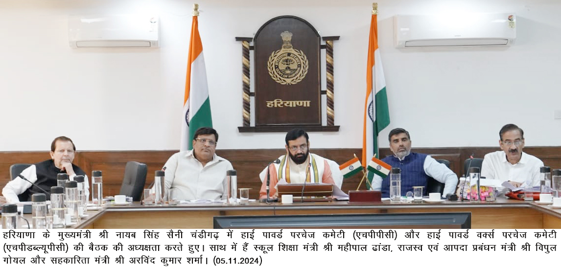 चंडीगढ़ । हरियाणा के मुख्यमंत्री नायब सिंह सैनी की अध्यक्षता में आज यहां हुई उच्चाधिकार प्राप्त क्रय समिति (एचपीपीसी), विभागीय उच्चाधिकार प्राप्त क्रय समिति (डीएचपीपीसी) तथा हाई पावर्ड वर्क्स परचेज कमेटी (एचपीडब्ल्यूपीसी) की बैठक में कुल मिलाकर 2050 करोड़ रुपये से अधिक के कॉन्ट्रैक्ट तथा विभिन्न वस्तुओं की खरीद को मंजूरी दी गई। बैठक में 729 करोड़ रुपये की लागत की विभिन्न जलापूर्ति व सीवरेज प्रबंधन परियोजनाओं को मंजूरी प्रदान की गई। विभिन्न बोलीदाताओं से नेगोसिएशन के बाद दरें तय करके लगभग 36 करोड़ रुपये की बचत की गई है।