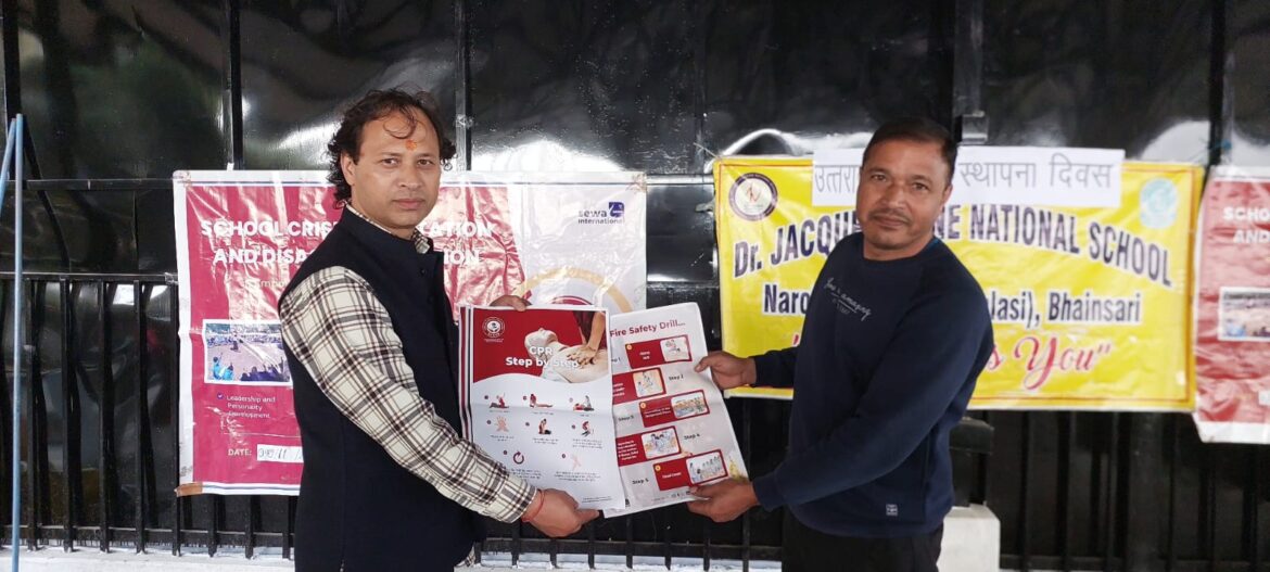 रुद्रप्रयाग।राज्य स्थापना दिवस पर सेवा इंटरनेशनल उत्तराखंड द्वारा पहाड़ी क्षेत्रों की आपदा प्रबंधन के तहत विद्यालय सुरक्षा एवं आपदाप्रबंधन प्रशिक्षण कार्यक्रम आयोजित किया। रुद्रप्रयाग जनपद के डॉक्टर जैक्सवीन नेशनल स्कूल गुप्तकाशी एवं राजकीय इंटरकॉलेज नारायण कोटी के 100 से अधिक छात्र छात्राओं एवं शिक्षकों को आपदा जोखिम कम करने हेतु प्रशिक्षित किया गया।