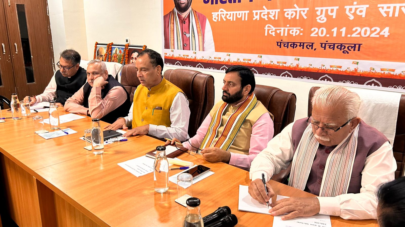 कोर ग्रुप की बैठक में मुख्यमंत्री नायब सिंह सैनी, राष्ट्रीय उपाध्यक्ष सौदान सिंह, केंद्रीय मंत्री मनोहर लाल, केंद्रीय संसदीय बोर्ड की सदस्य डा. सुधा यादव, प्रदेश प्रभारी डा. सतीश पूनिया, प्रदेश अध्यक्ष पंडित मोहन लाल बड़ौली, संगठनमंत्री फणीन्द्रनाथ शर्मा रहे मौजूद