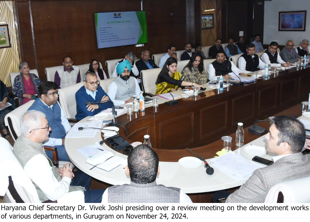 चंडीगढ़ । हरियाणा के मुख्य सचिव विवेक जोशी गुरुवार को गुरुग्राम में विकास कार्यों की समीक्षा करने के लिए शहर में मौजूद रहे। उन्होंने जीएमडीए, नगर निगम, लोक निर्माण विभाग, एनएचएआई सहित अन्य विभागों के अधिकारियों के साथ विस्तृत चर्चा की।
