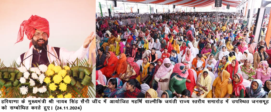जींद के एकलव्य स्टेडियम में भगवान वाल्मीकि जयंती समारोह में उमड़ी अपार भीड़ ने भाजपा पर लगाई मुहर