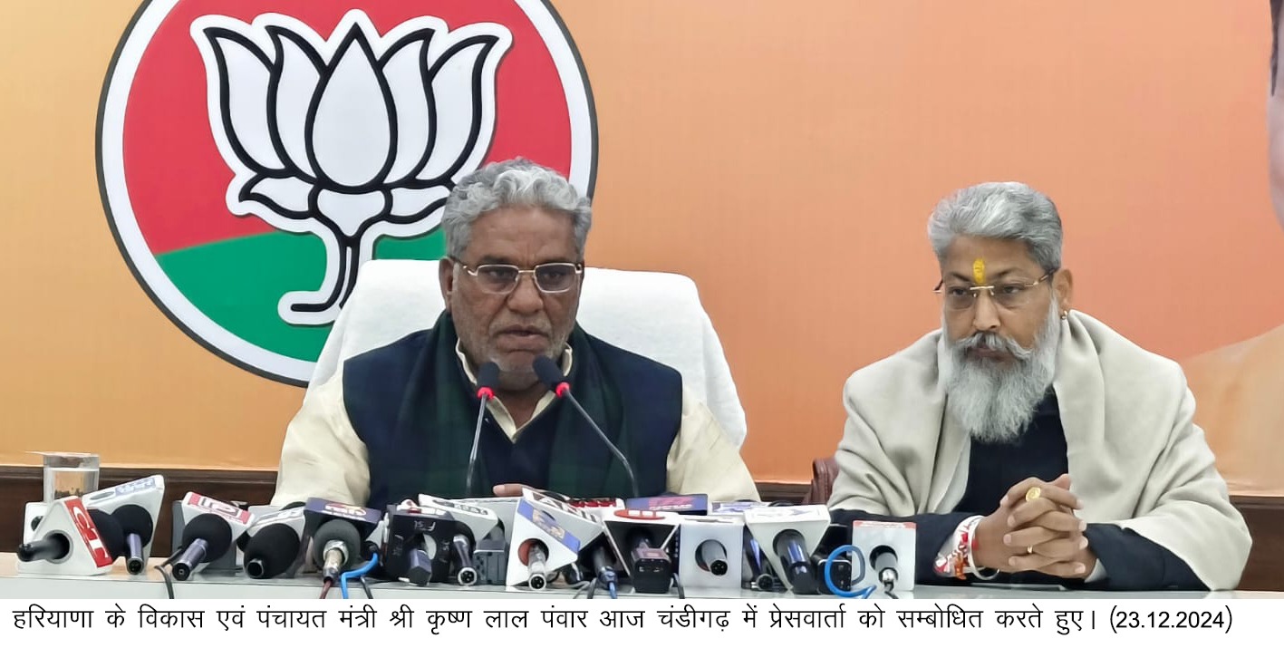 विकास एवं पंचायत मंत्री कृष्ण लाल पंवार आज चंडीगढ़ में एक प्रेस वार्ता को सम्बोधित कर रहे थे।