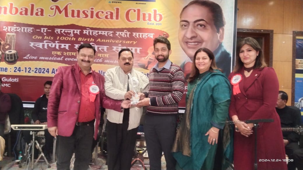 अंबाला म्यूजिकल क्लब ने रफ़ी साहब के 100वें जन्मदिवस पर स्वर्णिम संगीत संध्या का आयोजन कर की श्रद्धांजलि अर्पित