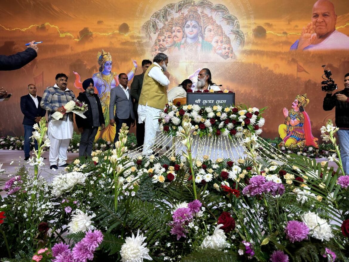 चंडीगढ़/अंबाला । महामंडलेश्वर गीता मनीषी स्वामी ज्ञानानंद महाराज के सान्निध्य में श्री कृष्ण कृपा जीओ गीता परिवार के तत्वाधान में आयोजित 5 दिवसीय दिव्य गीता सत्संग के तृतीय दिवस पर श्रद्धालुओं का काफी संख्या में पहुंचे। इस धार्मिक आयोजन में हरियाणा के ऊर्जा, परिवहन एवं श्रम मंत्री श्री अनिल विज ने बतौर मुख्यअतिथि व वशिष्ठ अतिथि के रूप में हरियाणा विधानसभा के डिप्टी स्पीकर डॉ. कृष्ण मिढ्ढा ने शिकरत की।