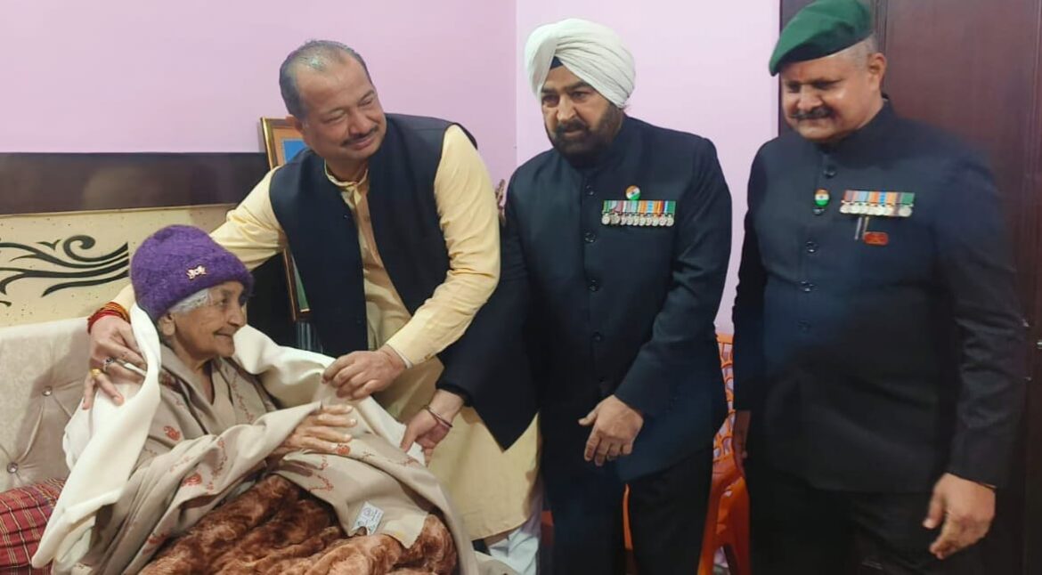 कुरुक्षेत्र। पूरे राष्ट्र ने नेताजी सुभाष चंद्र बोस की जयंती पराक्रम दिवस के रुप में मनाई और अनेक स्थानों पर नेताजी के साथ आजाद हिंद फौज के सैनिकों,उनकी वीरांगनाओं,भारत के अग्रणी वीर योद्धाओं और स्वतंत्रता सेनानियों का स्मरण करने के साथ श्रद्धांजली एवं सम्मान कार्यक्रम आयोजित किए गये।इस अवसर पर नेताजी के सहयोगी स्वतंत्रता सेनानी स्वर्गीय अमरनाथ शर्मा की धर्मपत्नी वीरांगना सीता देवी को कैप्टन गुरमेल,भाजपा जिलाध्यक्ष सुशील राणा एवं सूबेदार रविंदर कौशिक एवं स्वच्छ भारत मिशन हरियाणा सरकार के सदस्य डा.आरके जांगड़ा ने सम्मानित किया।