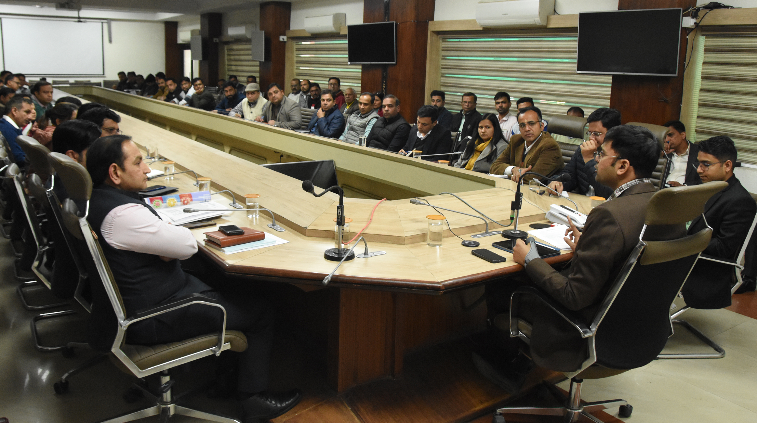 करनाल । एडीसी एवं नगर निगम चुनाव के रिटर्निंग अधिकारी यश जालुका ने स्थानीय निकाय चुनावों को लेकर वीरवार को लघु सचिवालय के सभागार में अधिकारियों की बैठक ली और कहा कि आदर्श चुनाव आचार संहिता लागू हो चुकी है, इसकी दृढ़ता से पालना की जाए तथा कहीं पर भी आचार संहिता की उल्लंघना बारे जानकारी मिलती है तो इसकी सूचना तुरंत रिटर्निंग अधिकारी को दें। उन्होंने कहा कि सभी रिटर्निंग अधिकारी नामांकन प्रक्रिया को लेकर समय रहते सभी आवश्यक तैयारियां सुनिश्चित की जाए। उम्मीदवार 11 फरवरी से 17 फरवरी, 2025 तक नामांकन दाखिल कर सकते हैं। इसके लिए समय सुबह 11 बजे से दोपहर 3 बजे के बीच निर्धारित किया गया है। उन्होंने बताया कि 12 फरवरी व 16 फरवरी, 2025 को अवकाश होने के कारण कोई नामांकन दाखिल नहीं किया जाएगा। स्थानीय निकाय चुनाव के लिए 02 मार्च, 2025 को मतदान होगा तथा 12 मार्च को मतगणना होगी। एडीसी एवं नगर निगम चुनाव के रिटर्निंग अधिकारी यश जालुका ने बताया कि स्थानीय निकाय चुनाव को स्वतंत्र, निष्पक्ष एवं शान्तिपूर्ण ढंग से सम्पन्न करवाने के लिए जिला प्रशासन द्वारा सभी आवश्यक प्रबंध पूरे कर लिए गए है और अलग-अलग कार्यो के लिए समुचित प्रबंधन के लिए उच्च अधिकारियों को नोडल अधिकारी नियुक्त किया गया है। उन्होंने सभी नोडल अधिकारी को निर्देश दिए कि वे समन्वय के साथ कार्य करें और चुनाव को लेकर अपनी जिम्मेदारी को गंभीरता से लें क्योंकि स्थानीय निकाय के चुनाव काफी संवेदनशील होते है और छोटे-छोटे इश्यू भी बड़े बन जाते है, इसलिए सभी अधिकारी अपनी डयूटी को पूरी ईमानदारी से करें। किसी भी उम्मीदवार व राजनीतिक दल के साथ पक्षपात न करें। उन्होंने कहा कि जो विकास कार्य शुरू हो चुके है वे पूरे करवाये जा सकते हे लेकिन चुनाव प्रक्रिया के दौरान नया कार्य नही किया जा सकेगा और वीआईपी से किसी कार्य का उद्धाटन व शिल्लान्यास ना करवाया जाए। उन्होंने रिटनिंग अधिकारियों को निर्देश दिए कि वे अपने-अपने क्षेत्र मे सरकार की नीतियों से संबंधित विज्ञापनों ,र्होडिग़ तथा पोस्टरों को तुरंत हटवाना सुनिश्चित करें। इस मौके पर चुनाव प्रक्रिया से संबंधित अधिकारी उपस्थित रहे। यहां होगा नामांकन – करनाल नगर निगम मेयर निर्वाचन हेतु वार्ड 1 से 20 तक करनाल की उपायुक्त कार्यालय कोर्ट रूम में सहायक रिटर्निंग अधिकारी एवं एसडीएम घरौंडा राजेश कुमार नामांकन लेंगे। – करनाल नगर निगम सदस्य निर्वाचन हेतु वार्ड 1 से वार्ड 5 तक प्रबंध निदेशक, शुगर मिल कार्यालय, मेरठ रोड, करनाल में सहायक रिटर्निंग अधिकारी एवं एमडी शुगर मिल राजीव प्रसाद नामांकन लेंगे। – करनाल नगर निगम सदस्य निर्वाचन हेतु वार्ड 9 से वार्ड 13 तक जिला परिषद कार्यालय, करनाल में सहायक रिटर्निंग अधिकारी एवं सीई