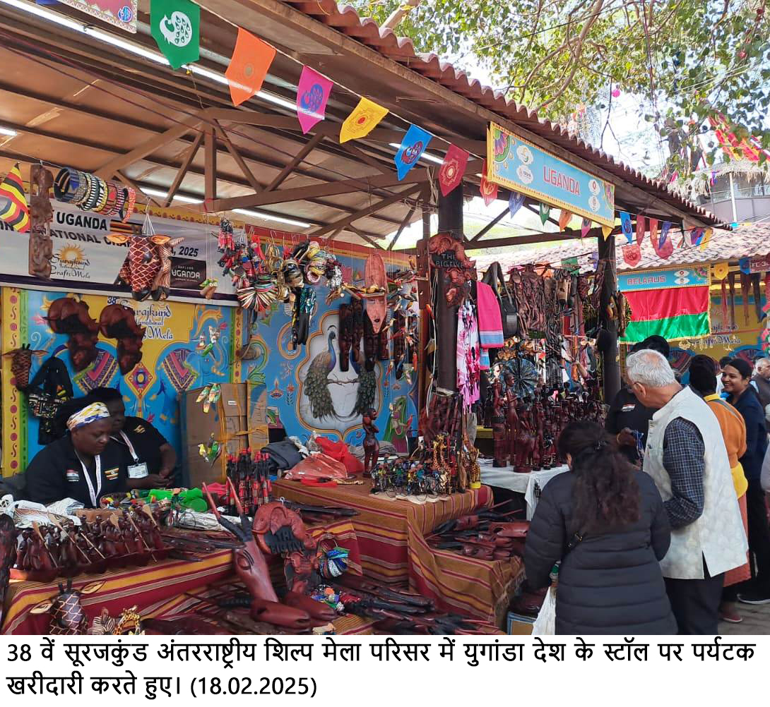 चंडीगढ़ । फरीदाबाद में चल रहे 38वां सूरजकुंड अंतरराष्ट्रीय शिल्प मेले में एफ-40 शॉप पर युगांडा देश में बने उत्पाद और सजावटी सामान को देखकर युवा इन्हें खरीद रहे हैं। यह उत्पाद इको फ्रेंडली के साथ-साथ रोजमर्रा के जीवन में काम आने वाले हैं।