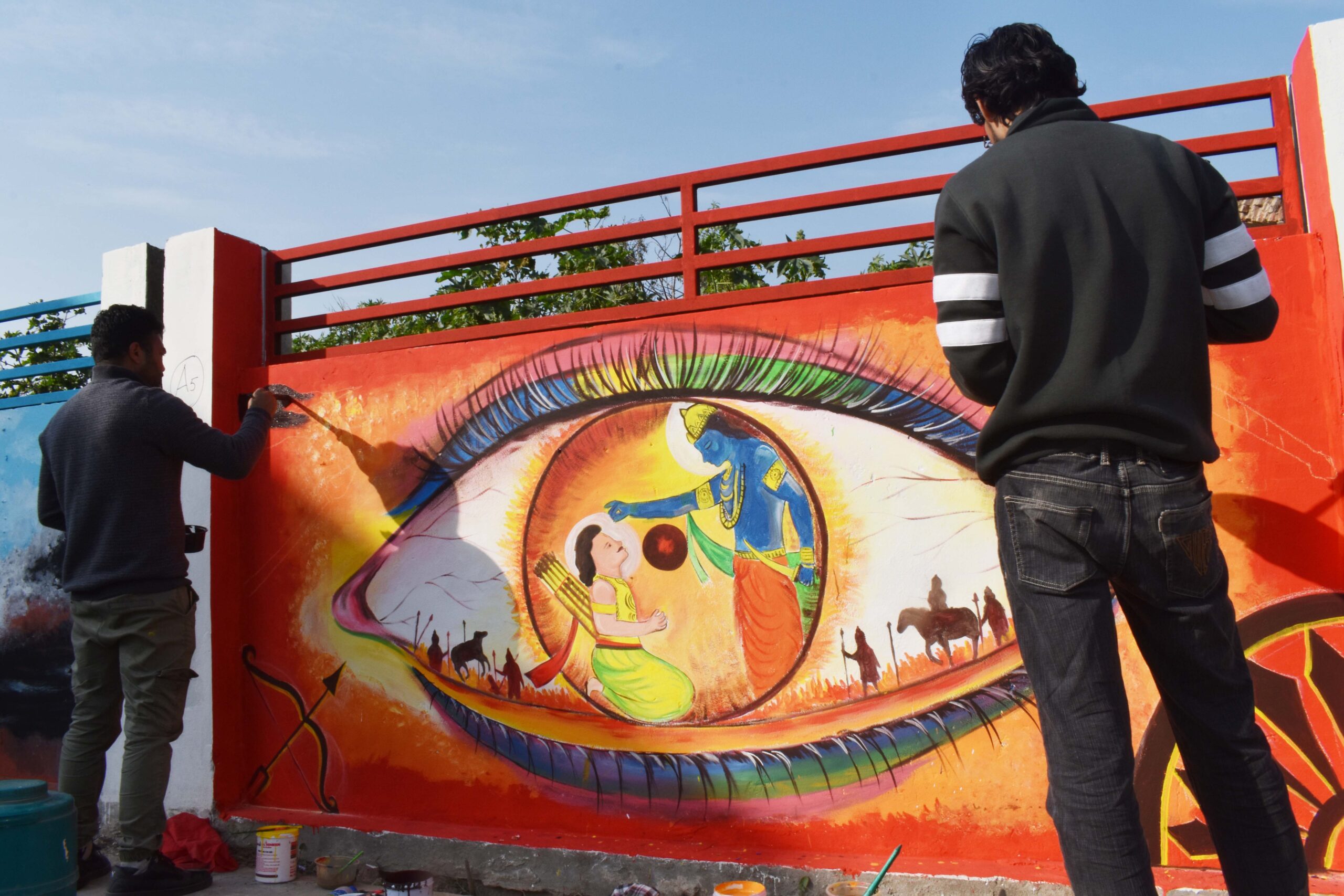 गौरतलब रहे कि कला संगम प्रतियोगिता में आई 10 टीमों का पहले रजिस्ट्रेशन किया गया। इसके बाद उन्हें ब्लॉक्स तथा पेंट व ब्रश इत्यादि पेंटिंग में इस्तेमाल होने वाला समान आबंटित किया गया। कलाकारों ने महाभारत थीम पर आधारित महारथी अर्जुन को गीता का संदेश देते श्रीकृष्ण, वृक्ष पर बैठे पक्षी की आंख को बेदते अर्जुन, मुरली बजाते श्रीकृष्ण, रथ का पहिया उठाते श्रीकृष्ण तथा ब्रह्मा, विष्णु महेश के स्वरूप को रंगो से उकेरा। प्रतिभागियों के लिए रिफ्रेशमेंट व लंच की व्यवस्था नगर निगम द्वारा की गई थी। प्रतियोगिता कार्यक्रम में एयू स्मॉल फाईनेंस बैंक का भी सहयोग रहा।