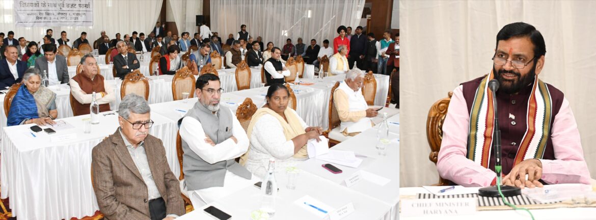 चंडीगढ़ । हरियाणा सरकार द्वारा सभी हितधारकों के साथ “बजट पूर्व परामर्श” की शुरू की गई पहल को आगे बढ़ाते हुए मुख्यमंत्री श्री नायब सिंह सैनी ने आज सभी कैबिनेट एवं राज्य मंत्री, विधायकों एवं प्रशासनिक सचिवों से चर्चा कर एक समावेशी बजट की परिकल्पना को साकार करने के लिए वित्त वर्ष 2025-26 के बजट पर उनके सुझाव लिए।