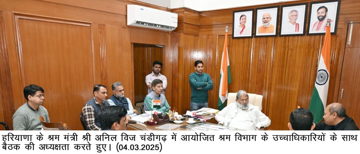 चंडीगढ़ । हरियाणा के श्रम मंत्री अनिल विज ने श्रम विभाग के अधिकारियों को निर्देश दिया है कि गलत तरीके से निर्माण श्रमिकों के पंजीकरण रद्द करने वाले कर्मियों पर विभागीय कार्रवाई की जाए। यह निर्णय हरियाणा भवन एवं अन्य संनिर्माण कर्मकार कल्याण बोर्ड से जुड़ी बैठक के दौरान लिया गया। श्री अनिल विज आज चंडीगढ़ स्थित अपने कार्यालय में इस बैठक की अध्यक्षता कर रहे थे।