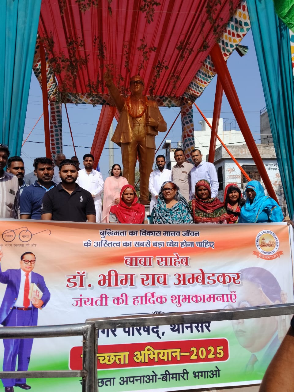 कुरुक्षेत्र । नगर परिषद थानेसर की तरफ से भारत रत्न डा. भीमराव अंबेडकर की जयंती उपलक्ष मेें स्वच्छता अभियान का शुभारंभ किया। इस स्वच्छता अभियान को शहर के सभी 32 वार्डों में चलाया जाएगा। इस अभियान के साथ आमजन को साथ जोड़ने का प्रयास किया जाएगा। इस अभियान को सभी के सांझे सहयोग से सफल बनाया जाएगा और थानेसर को पूर्णतः स्वच्छ बनाया जाएगा।