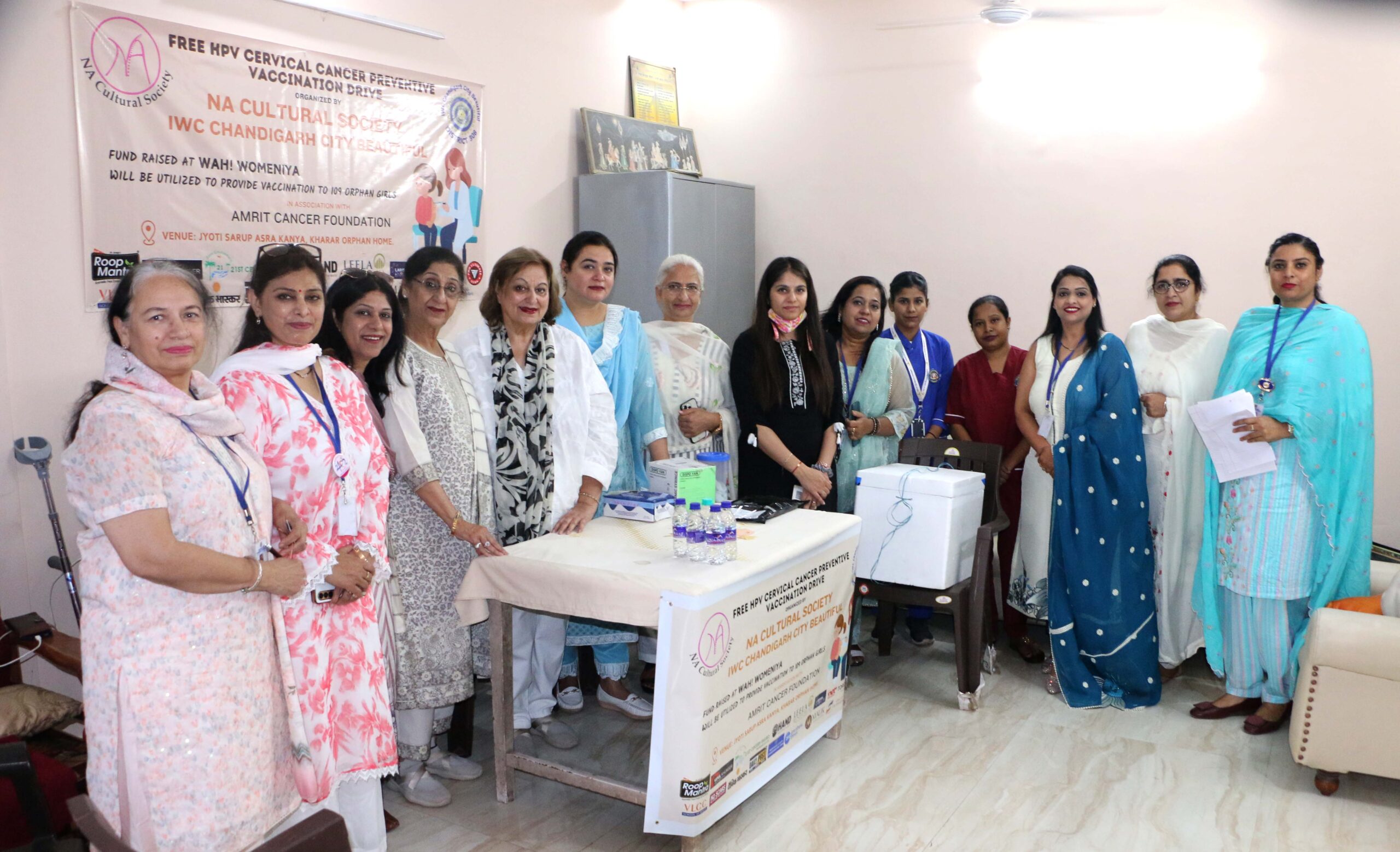 चंडीगढ़ । इनर व्हील क्लब चंडीगढ़ सिटी ब्यूटीफुल, एन ए कल्चरल सोसाइटी तथा इनर व्हील क्लब चंडीगढ़ मिड टाउन के संयुक्त प्रयास से खरड़ स्थित ज्योति सरूप आसरा कन्या अनाथालय में 101 अनाथ कन्याओं को नि:शुल्क एचपीवी टीका लगाया गया। यह टीकाकरण स्त्री रोग विशेषज्ञ डॉ. हरप्रीत कौर की देखरेख में संपन्न हुआ। कार्यक्रम का आयोजन क्लब की प्रेजिडेंट अनिता मिड्ढा और सोसाइटी की प्रेजिडेंट निखार के नेतृत्व में किया गया।