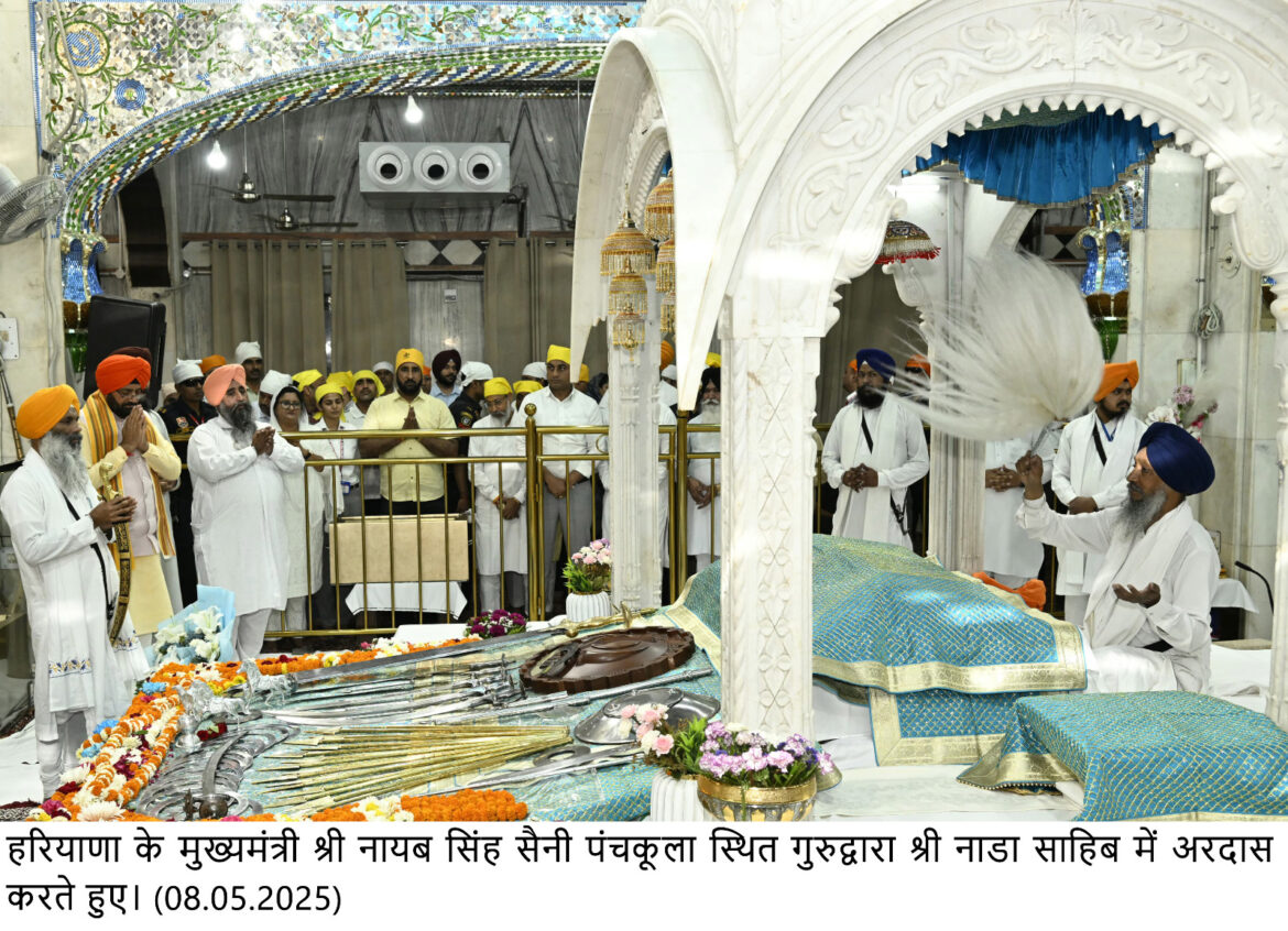 मुख्यमंत्री आज पंचकूला स्थित नाडा साहिब गुरुद्वारा में मत्था टेकने उपरांत पत्रकारों से बातचीत कर रहे थे। श्री नायब सिंह सैनी ने कहा कि आज यहां आने का परम सौभाग्य मिला है और नाडा साहिब गुरुद्वारा में शीश नवाकर देश प्रदेश की भलाई के लिए अरदास की है।
