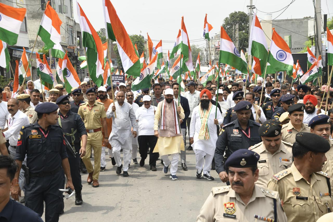 मुख्यमंत्री नायब सिंह सैनी ने हरियाणा की वीरभूमि का नमन करते हुए कहा कि यहां से लाखों जवान भारत माता की सेवा के लिए तत्पर रहते हैं। यह तिरंगा यात्रा वीरों को पूरा देश उनके साथ खड़ा होने का संदेश देने के लिए है। यह यात्रा उन परिवारों को समर्पित है जिनके बेटे-बेटियां ने सेवा करते हुए यह दिखाया है कि तिरंगा केवल एक झंडा नहीं, हमारी आत्मा है, हमारी पहचान है। देशभक्ति हरियाणा की मिट्टी के कण-कण में बसी हुई है। उन्होंने कहा कि उन शूरवीरों के सम्मान की तिरंगा यात्रा है, जिन सैनिकों ने ऑपरेशन सिंदूर के माध्यम से भारत की अस्मिता, रक्षा और प्रतिष्ठा को उंचाई देने का काम किया है। यह भारतीय सैनिकों के सम्मान का प्रतीक है।