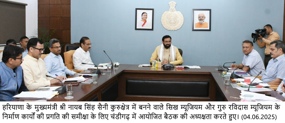 मुख्यमंत्री सैनी आज यहां कुरुक्षेत्र में बनने वाले सिख म्यूजियम और गुरु रविदास म्यूजियम के निर्माण कार्यों की प्रगति की समीक्षा के लिए आयोजित बैठक की अध्यक्षता कर रहे थे।