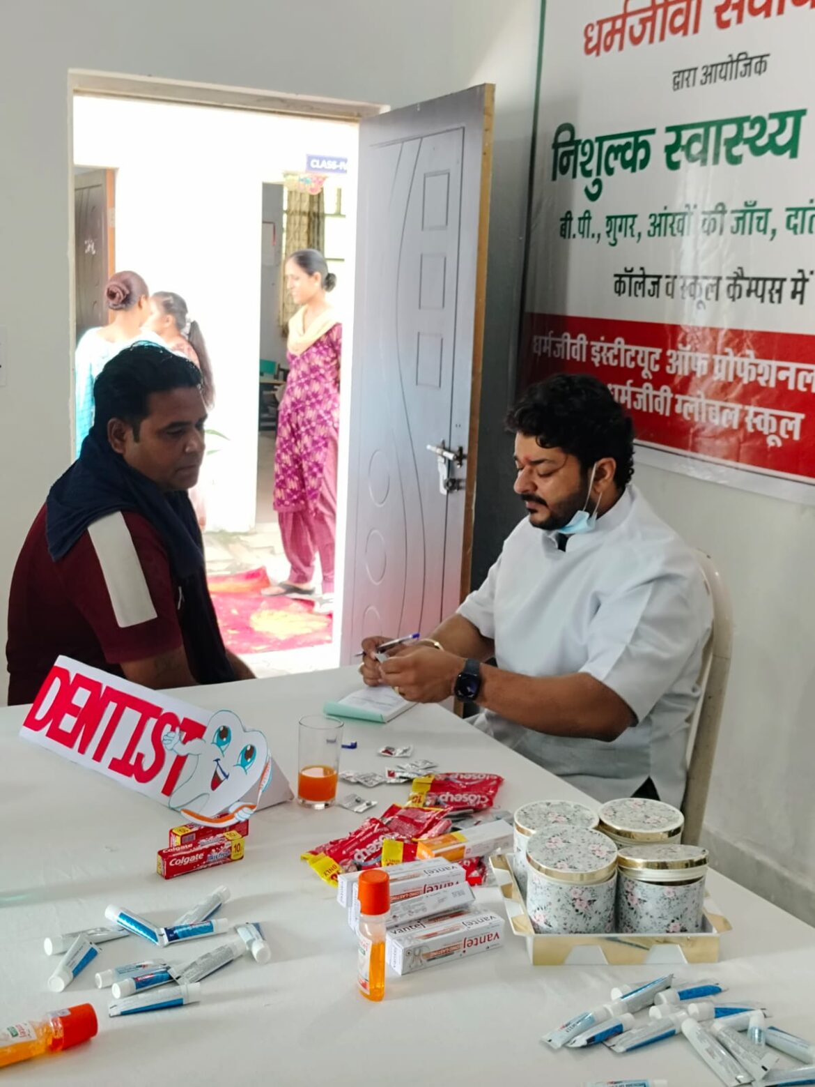 कुरुक्षेत्र । कॉलेज सचिव शशि सभरवाल के मार्गदर्शन में धर्मजीवी सेवार्थ ट्रस्ट के द्वारा धर्मजीवी इंस्टीट्यूट ऑफ प्रोफेशनल एजुकेशन, बगथला के परिसर में निःशुल्क दंत जांच शिविर का आयोजन किया गया।