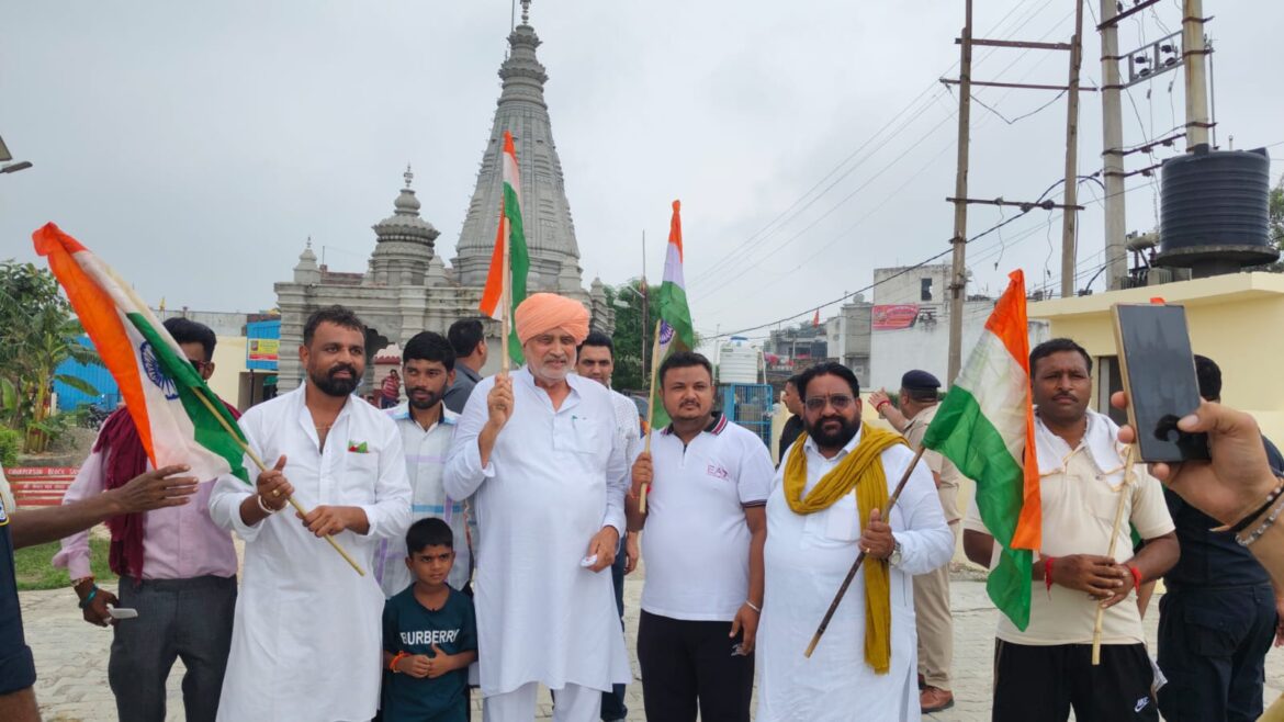 यमुनानगर। हरियाणा के कृषि एवं किसान कल्याण, मत्स्य एवं पशुपालन विभाग के कैबिनेट मंत्री श्याम सिंह राणा ने सरस्वती खंड के गांव ऊंचा चांदना से भारत माता की जय के नारे के उद्घोष से तिरंगा यात्रा को झंडी दिखाकर रवाना किया और देश के वीर जवानों एवं शहीदों को श्रद्धांजलि दी। देश की आजादी में अपने प्राणों की आहुति देने वाले शहीदों की याद एवं शहीदों को सम्मान देने के लिए हर वर्ष तिरंगा यात्रा का आयोजन किया जाता है। इस तिरंगा यात्रा में भाजपा के वरिष्ठ नेता, कार्यकर्ताओं सहित खंड के विभिन्न गांवों से आए युवा, महिला एवं पुरुष शामिल हुए। इस तिरंगा यात्रा में शामिल होने वाले, विशेषकर युवाओं में उमंग, उत्साह व जोश दिखाई पड़ रहा था। तिरंगा यात्रा का माहौल इतना उत्साहपूर्ण था कि हर कोई देशभक्ति की भावना से ओतप्रोत होकर लौटा। यह तिरंगा यात्रा ऊंचा चांदना से शुरू होकर गांव टोपरा कलां में सम्पन्न हुई।