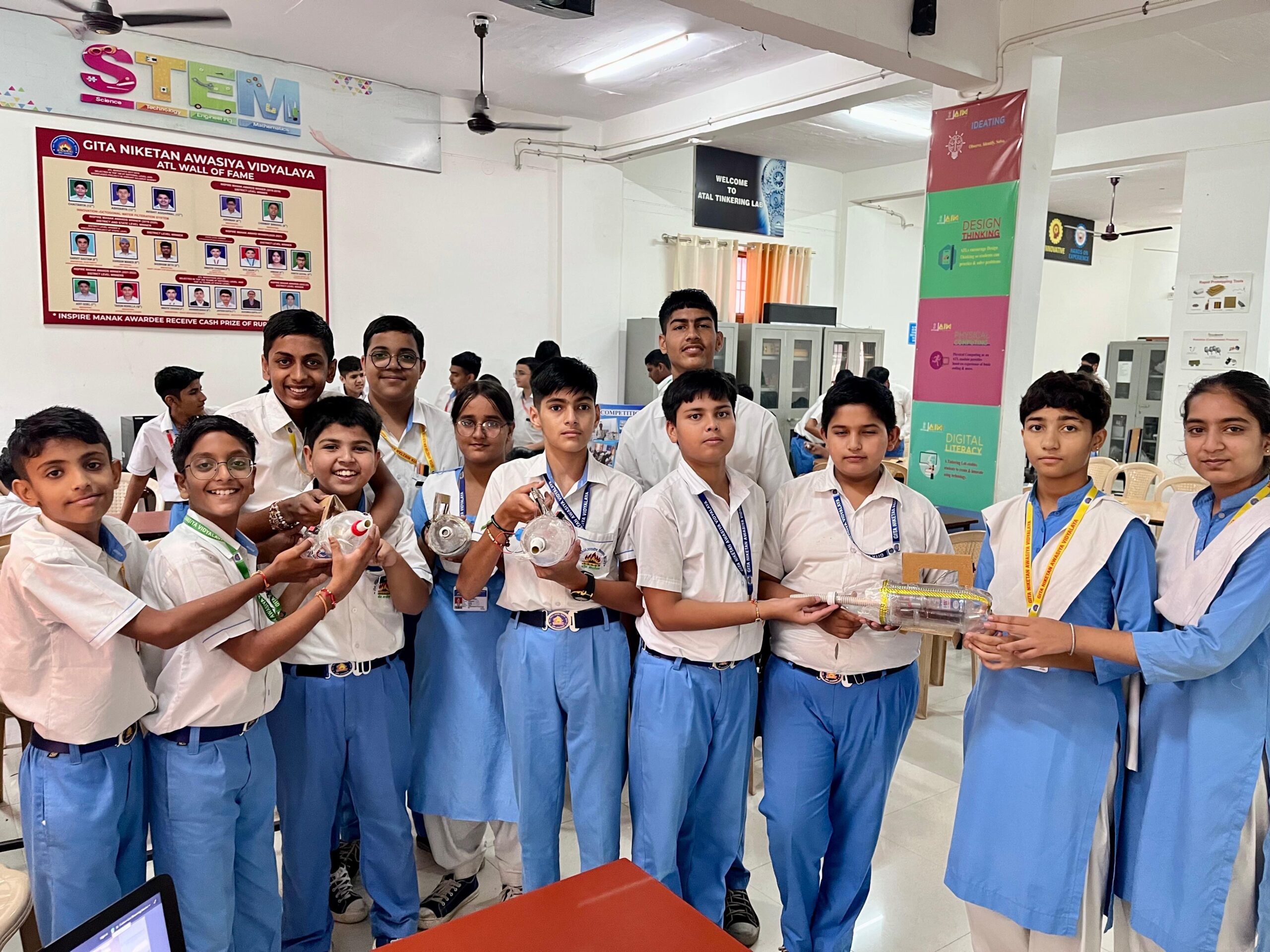 कुरुक्षेत्र । गीता निकेतन आवासीय विद्यालय ने अटल टिंकरिंग लैब (ATL) पहल के अंतर्गत अटलनवाचार मिशन (AIM), नीति आयोग द्वारा आयोजित मेगा टिंकरिंग डे बड़े उत्साह के साथमनाया। इस कार्यक्रम का उद्देश्य विद्यार्थियों में नवाचार, रचनात्मकता और व्यावहारिकसमस्या-समाधान कौशल को प्रोत्साहित करना था। कक्षा 6 से 12 तक के कुल 50 विद्यार्थियों ने उत्साहपूर्वक भाग लिया और विभिन्न परियोजनाएँ एवं मॉडल प्रस्तुत किए।दिन का मुख्य आकर्षण वैक्यूम क्लीनर प्रोजेक्ट था, जिसे आसानी से उपलब्ध सामग्रियोंका उपयोग करके तैयार किया गया था और जिसमें  वायु-दबाव तथा यांत्रिक डिजाइन केसिद्धांतों का प्रदर्शन किया गया। विद्यार्थियों ने नीति आयोग द्वारा आयोजित एक ऑनलाइनज़ूम मीटिंग में भी भाग लिया, जहाँ उन्होंने आधुनिक तकनीक और नवाचार से संबंधितमहत्वपूर्ण जानकारियाँ प्राप्त की।