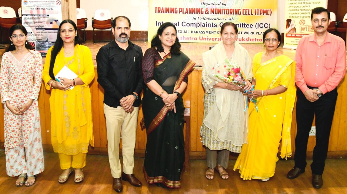 कुरुक्षेत्र। यौन उत्पीड़न से बचने के लिए जागरुकता बहुत ही ज़रूरी है। अपने कार्यस्थल पर किसी का दबाव सहन न करें। दबाव देना, फब्तियां कसना, अश्लील इशारे करना यौन अपराध की श्रेणी में आता है । कार्य स्थल पर कार्य करते हुए मौखिक शब्दों पर ध्यान देना ज़रूरी है। यह विचार कुरुक्षेत्र विश्वविद्यालय की दूरस्थ एवं आनलाइन शिक्षा केन्द्र की निदेशक प्रो. मंजूला चौधरी ने बतौर मुख्यातिथि गुरुवार को कुरुक्षेत्र विश्वविद्यालय के कुलपति प्रोफेसर सोमनाथ सचदेवा के मार्गदर्शन में कुरुक्षेत्र विश्वविद्यालय (केयूके) के प्रशिक्षण, योजना और निगरानी प्रकोष्ठ (टीपीएमसी) तथा आंतरिक शिकायत समिति (आईसीसी) के संयुक्त तत्वावधान में “कार्यस्थल पर महिलाओं का यौन उत्पीड़न (रोकथाम, निषेध और निवारण) अधिनियम, 2013” विषय पर केयू में कार्यरत सहायकों के लिए डॉ. आर.के.सदन में आयोजित कार्यशाला में व्यक्त किए। इससे पहले दीप प्रज्वलित कर कार्यक्रम का शुभारंभ किया किया गया। कुवि की आंतरिक शिकायत समिति की अध्यक्ष प्रो. सुनीता सिरोहा ने सभी अतिथियों का स्वागत किया।