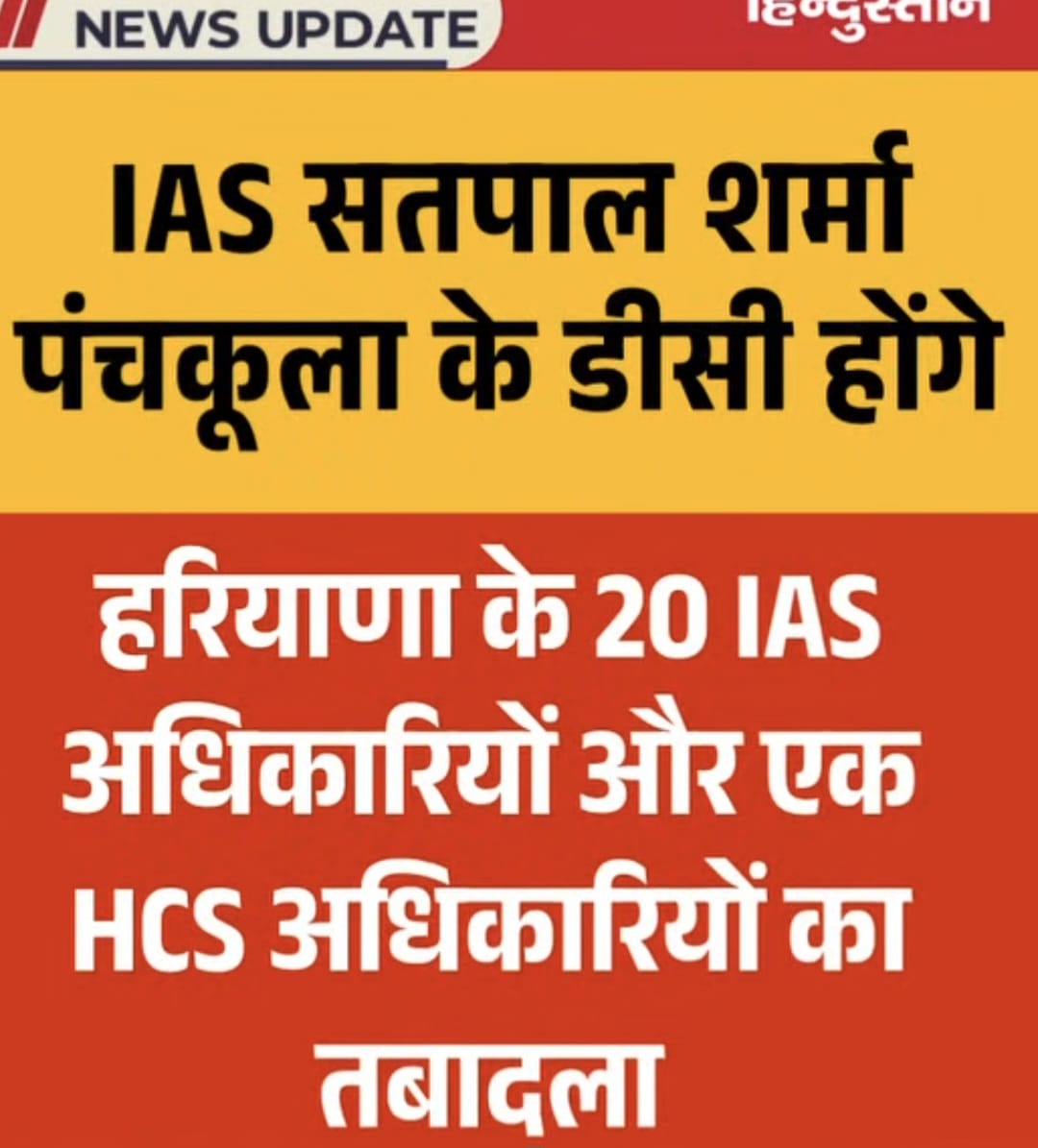 चंडीगढ़।हरियाणा में बड़ा प्रशासनिक फेरबदल हुआ है।चीफ़ सेक्रेटरी अनुराग रस्तोगी की ओर से जारी आदेश पर हरियाणा के 20 IAS अधिकारियों और एक HCS अधिकारियों का तबादला किया गया है।