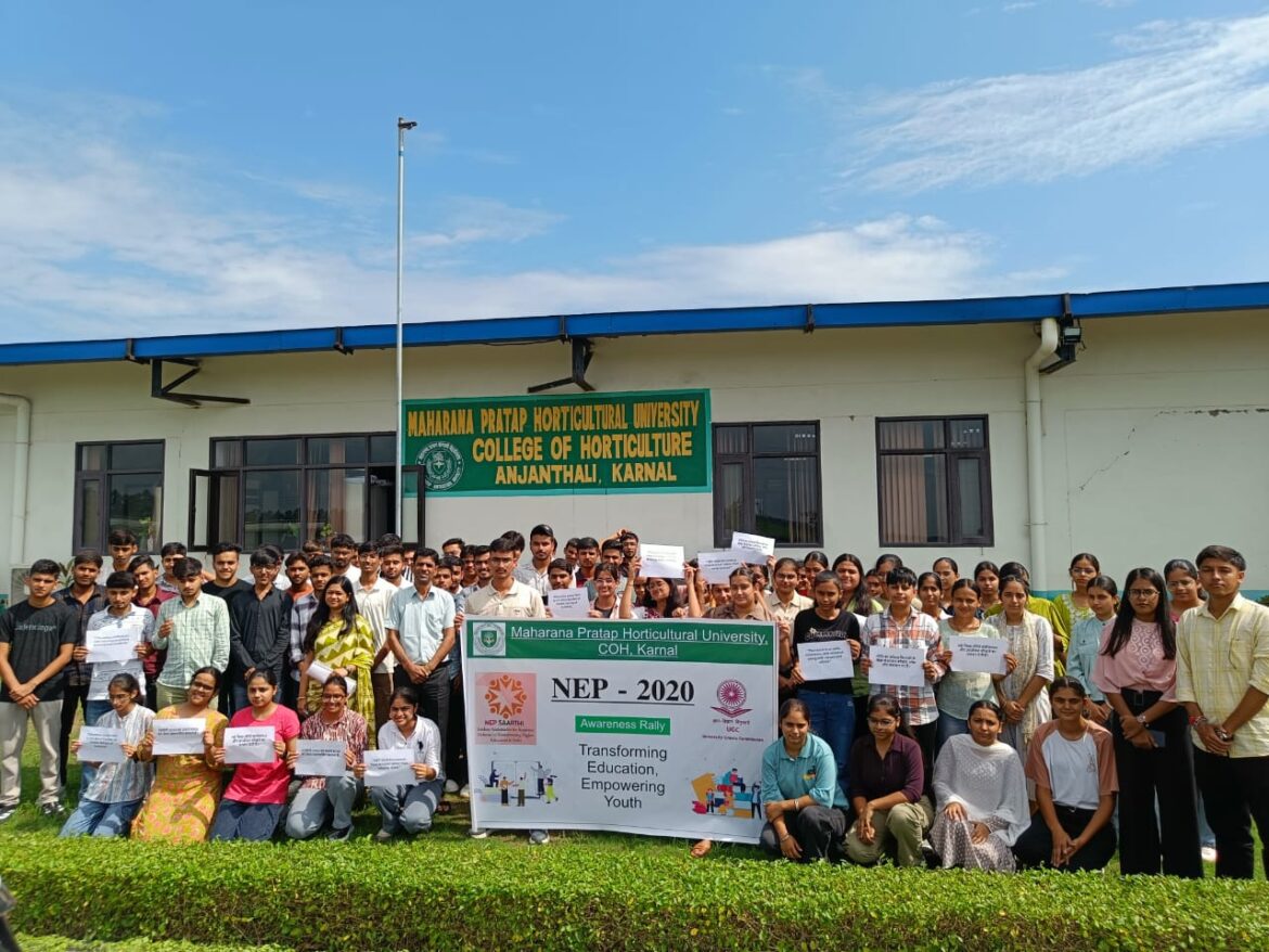 करनाल । महाराणा प्रताप हॉर्टिकल्चर यूनिवर्सिटी करनाल में इंडियन नॉलेज सिस्टम (आईकेएस) पैनल मीटिंग एवं राष्ट्रीय शिक्षा नीति को लेकर जागरूकता रैली निकाली गई। जागरूकता रैली में विद्यार्थियों ने बढ़चढ़ कर भाग लिया। जागरूकता रैली का आयोजन विश्वविद्यालय परिसर एवं अंजनथली गांव में किया गया। रैली का उदेश्य स्थानीय विद्यार्थियों एवं ग्रामीण समाज में नई शिक्षा नीति 2020 के उदेश्यों और महत्व के प्रति जागरूकता फैलाना था।