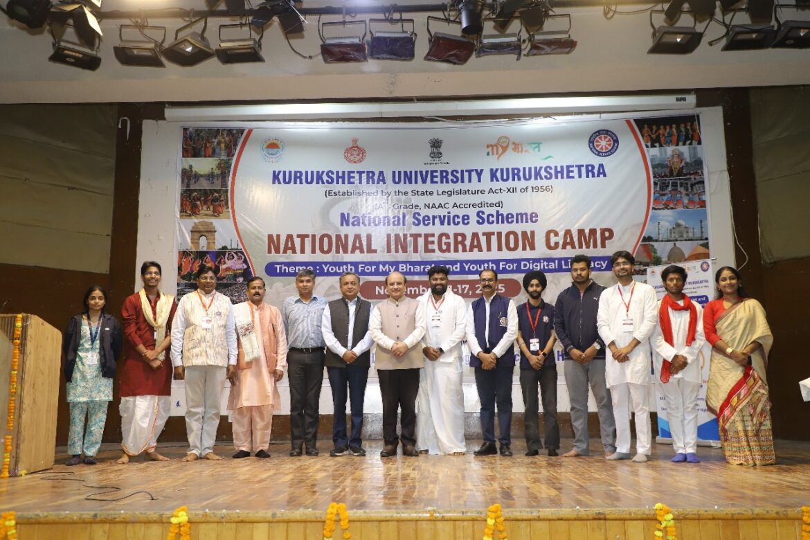 कुरुक्षेत्र। कुरुक्षेत्र विश्वविद्यालय में राष्ट्रीय सेवा योजना के तत्वावधान में आयोजित राष्ट्रीय एकता शिविर का शुभारंभ अत्यंत उत्साह और उल्लास के साथ हुआ। देश के 17 विभिन्न राज्यों से 200 स्वयंसेवक एवं 20 कार्यक्रम अधिकारी इस शिविर में भाग ले रहे हैं। शिविर का उद्देश्य युवाओं में डिजिटल साक्षरता, राष्ट्रीय एकता एवं सेवा भाव को प्रोत्साहित करना है।