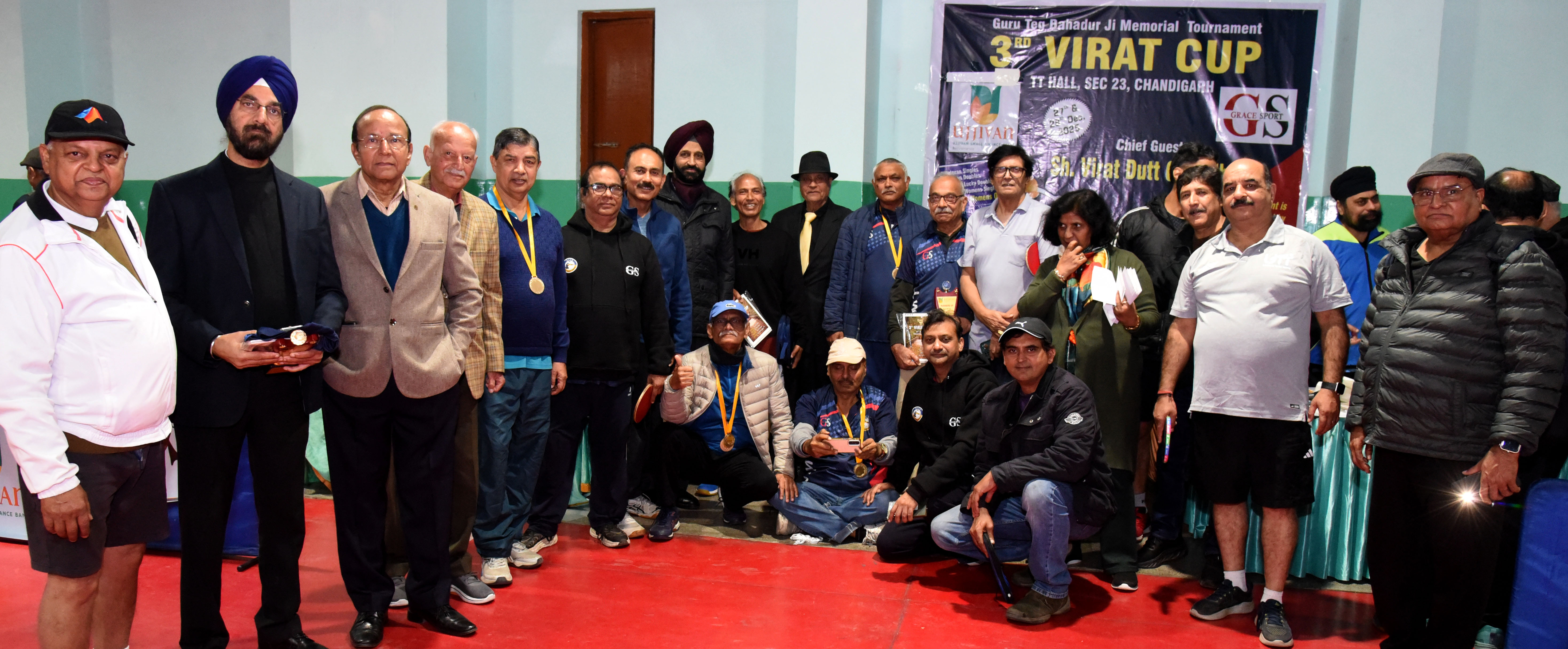 चंडीगढ़। सेक्टर-23 स्थित टेबल टेनिस हॉल, चंडीगढ़ में आयोजित थर्ड विराट कप टेबल टेनिस टूर्नामेंट का सफलतापूर्वक समापन हो गया। इस टूर्नामेंट का आयोजन सेवानिवृत्त आईआरएस अधिकारी एवं टेबल टेनिस प्रेमी विराट दत्त चौधरी द्वारा किया गया, जिन्होंने इस प्रतियोगिता में चेयरमैन की भूमिका भी निभाई।इस टूर्नामेंट में हरियाणा, हिमाचल प्रदेश, चंडीगढ़ और पंजाब से आए खिलाड़ियों ने उत्साहपूर्वक भाग लिया। विभिन्न आयु वर्गों और श्रेणियों में आयोजित मुकाबलों के दौरान खिलाड़ियों ने उच्च स्तर की खेल प्रतिभा, फिटनेस और अनुकरणीय खेल भावना का प्रदर्शन किया।वेटरन 69+ सिंगल्स वर्ग में गुरप्रीत सिंह ने प्रथम स्थान प्राप्त किया, जबकि पी.सी. सरदाना उपविजेता रहे। 59+ सिंगल्स वर्ग में मुकेश मिश्रा ने शीर्ष स्थान हासिल किया, जबकि हरीश कक्कड दूसरे स्थान पर रहे। मेंस सिंगल्स ओपन वर्ग में अंकुश कपूर विजेता बने, जबकि विकास गुलेरिया ने दूसरा स्थान प्राप्त किया।वेटरन महिला वर्ग में मेघा ने प्रथम स्थान प्राप्त किया, जबकि सविता डोभाल उपविजेता रहीं। वूमेन्स सिंगल्स ओपन वर्ग में चेरिश छाबड़ा ने प्रथम स्थान हासिल किया, जबकि भावनी कालिया दूसरे स्थान पर रहीं।59+ मेंस डबल्स वर्ग में सुनील मंचंदा और संजय शर्मा की जोड़ी ने प्रथम स्थान प्राप्त किया, जबकि जवाहर भंडारी और एम.पी. सिंह दूसरे स्थान पर रहे। वेटरन 69+ डबल्स वर्ग का खिताब सुभाष शर्मा और गुरप्रीत सिंह ने जीता, जबकि पी.सी. सरदाना और अशोक शर्मा उपविजेता रहे।लकी डबल्स वर्ग में एम.ए. खान और हरीश कक्कड ने प्रथम स्थान प्राप्त किया, जबकि डी.के. और दीपक शर्मा दूसरे स्थान पर रहे।टूर्नामेंट का समापन एक सम्मान समारोह के साथ हुआ, जिसमें विजेताओं को ट्रॉफियां प्रदान की गईं तथा सभी प्रतिभागियों को स्मृति चिह्न एवं उपहार देकर सम्मानित किया गया।इस अवसर पर चेयरमैन विराट दत्त चौधरी ने सभी खिलाड़ियों, अधिकारियों और सहयोगियों का हार्दिक आभार व्यक्त किया। उन्होंने कहा कि टूर्नामेंट की सफलता क्षेत्र में वेटरन एवं ओपन श्रेणियों के बीच टेबल टेनिस की बढ़ती लोकप्रियता और इसके निरंतर प्रचार-प्रसार को दर्शाती है।