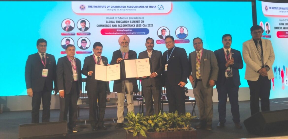 कुरुक्षेत्र। कुरुक्षेत्र विश्वविद्यालय के कुलपति प्रो. सोमनाथ सचदेवा के मार्गदर्शन में वाणिज्य विभाग द्वारा 16 जनवरी 2026 को भारतीय चार्टर्ड अकाउंटेंट्स संस्थान के साथ एक महत्वपूर्ण समझौता किया गया। यह एमओयू ग्लोबल एजुकेशन समिटः कॉमर्स एंड अकाउंटेंसी 2026 के अवसर पर ललित होटल, नई दिल्ली में आयोजित शिखर सम्मेलन के दौरान संपन्न हुआ।इस अवसर पर एमओयू पर कुरुक्षेत्र विश्वविद्यालय के कुलसचिव लेफ्टिनेंट प्रो. वीरेंद्र पाल तथा वाणिज्य विभाग के अध्यक्ष प्रो. महाबीर नरवाल ने हस्ताक्षर किए। इस कार्यक्रम में प्रो. तेजिंदर शर्मा भी विशेष रूप से उपस्थित रहे।कुलसचिव प्रो. वीरेन्द्र पाल ने कहा कि यह समझौता वाणिज्य, लेखांकन एवं प्रबंधन शिक्षा के क्षेत्र में शैक्षणिक और व्यावसायिक सहयोग को सुदृढ़ करने की दिशा में एक महत्वपूर्ण पहल है। इस एमओयू का उद्देश्य वाणिज्य, लेखांकन एवं प्रबंधन शिक्षा को व्यावहारिक, उद्योगोन्मुख और पेशेवर आवश्यकताओं के अनुरूप बनाना है।प्रो. महावीर नरवाल ने बताया कि इस एमओयू के अंतर्गत वाणिज्य विभाग में संचालित बी.कॉम., बी.कॉम. (ऑनर्स), एम.कॉम., प्रमाणपत्र एवं डिप्लोमा पाठ्यक्रमों में पाठ्यक्रम विकास, फैकल्टी प्रशिक्षण, विद्यार्थियों के कौशल संवर्धन तथा व्यावसायिक मार्गदर्शन पर विशेष बल दिया जाएगा। साथ ही संयुक्त रूप से फैकल्टी डेवलपमेंट प्रोग्राम, कार्यशालाएं, सेमिनार, सम्मेलन, अतिथि व्याख्यान और शोध गतिविधियां आयोजित की जाएंगी। इसके अतिरिक्त, वाणिज्य विभाग, कुरुक्षेत्र विश्वविद्यालय और स्वर्ण जयंती हरियाणा इंस्टीट्यूट फॉर फिस्कल मैनेजमेंट के बीच भी 8 जनवरी 2026 को एक अलग समझौता ज्ञापन पर हस्ताक्षर किए गए। यह एमओयू डीन अकादमिक अफेयर्स डॉ. राकेश कुमार तथा वाणिज्य विभाग के अध्यक्ष प्रो. महाबीर नरवाल द्वारा हस्ताक्षरित किया गया। इस समझौते का उद्देश्य सार्वजनिक वित्त, कराधान, बजटिंग, वित्तीय प्रशासन और नीति-आधारित अनुसंधान के क्षेत्रों में अकादमिक एवं प्रशिक्षण सहयोग को बढ़ावा देना है। दोनों समझौते राष्ट्रीय शिक्षा नीति 2020 के अनुरूप उच्च शिक्षा में गुणवत्ता, नवाचार, कौशल विकास और शोध को प्रोत्साहित करेंगे।