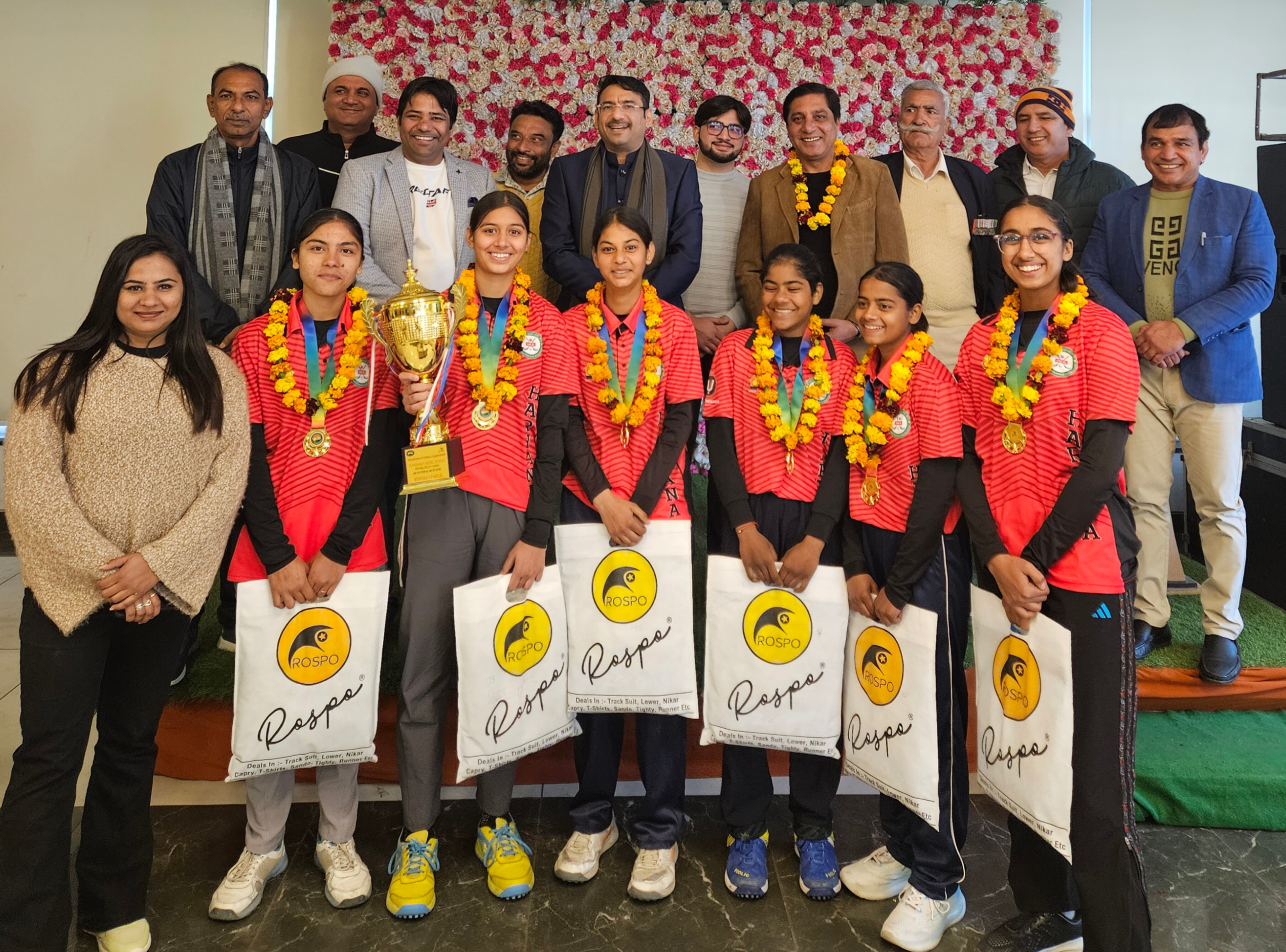 रोहतक। दिल्ली में रोहिणी के युवा शक्ति मॉडल स्कूल में सम्पन्न हुई 19 वीं जूनियर राष्ट्रीय फ्लोरबाल चैम्पियनशिप में हरियाणा की लड़कियों की टीम ने शानदार प्रदर्शन कर प्रथम स्थान प्राप्त किया।फ्लोरबाल संघ के प्रदेशाध्यक्ष गजेंन्द्र फौगाट ने बताया कि लीग मैच में हरियाणा की टीम ने छत्तीसगढ़ को 4-0, बिहार को 5-0, कर्नाटक को 9-0 से हराकर अपने पुल में प्रथम रही, सेमीफाइनल मुकाबले में उत्तर प्रदेश के साथ हुए मुकाबले में उत्तर प्रदेश की टीम को 2-1 के अंतर से हराकर फाइनल में प्रवेश किया। फाइनल मुकाबला तमिलनाडु के साथ हुआ, जिसमें हरियाणा ने तमिलनाडु को 4-1 के अंतर से हराकर शानदार प्रदर्शन करते हुए प्रथम स्थान प्राप्त कर ट्रॉफी पर कब्जा किया। हरियाणा टीम कैप्टन चेष्टा छिल्लर को सबसे अधिक 19 गोल करने पर बेस्ट खिलाड़ी के अवार्ड से सम्मानित किया गया । इस मौके पर सनसिटी क्लब में आयोजित सम्मान समारोह में विजेता टीम का हरियाणा पहुंचने पर स्वागत व सम्मान किया।हरियाणा फ्लोरबाल के अध्यक्ष व मुख्यमंत्री के ओएसडी गजेंद्र फौगाट ने टीम को जीत की शुभकामनाएं देते हुए कहा कि हरियाणा की बेटियां स्वर्ण पदक ले कर आई हैं, जिससे आने वाली अंतरराष्ट्रीय प्रतिस्पर्धाओं में इनका स्थान पक्का हो गया है। उन्होंने सभी खिलाडिय़ों को नशे से दूरी और खेल हो मजबूती का नारा दिया। इस मौके पर फूल-मालाओं से स्वागत सभी बेटियों का स्वागत करके उन्हें इनाम भी वितरित किये। इस मौके पर राष्ट्रीय उपाध्यक्ष दीपेंद्र आर्य व प्रदेश कोषाध्यक्ष सुरजीत ने सभी खिलाडिय़ों को डाइट के बारे में टिप्स दिए। टीम में कप्तान चेष्टा छिल्लर, सिमरन, कनिष्का, शिखा, निधी, हिमांशी, पलक, तन्नु, सविता, टीम कोच मनीषा रही। इस अवसर पर डॉ. दीपेन्द्र आर्य, हरियाणा फ्लोरबाल संघ के उपाध्यक्ष सुभाष रुहील, विकास, कोषाध्यक्ष सुरजीत नैन, मुकेश कुमार, टाइगर मेहर सिंह, कर्मजीत नैन, मास्टर जगत चहल, हरियाणा फ्लोरबाल संघ के किट पार्टनर संजय रोहिल्ला उपस्थित रहे।
