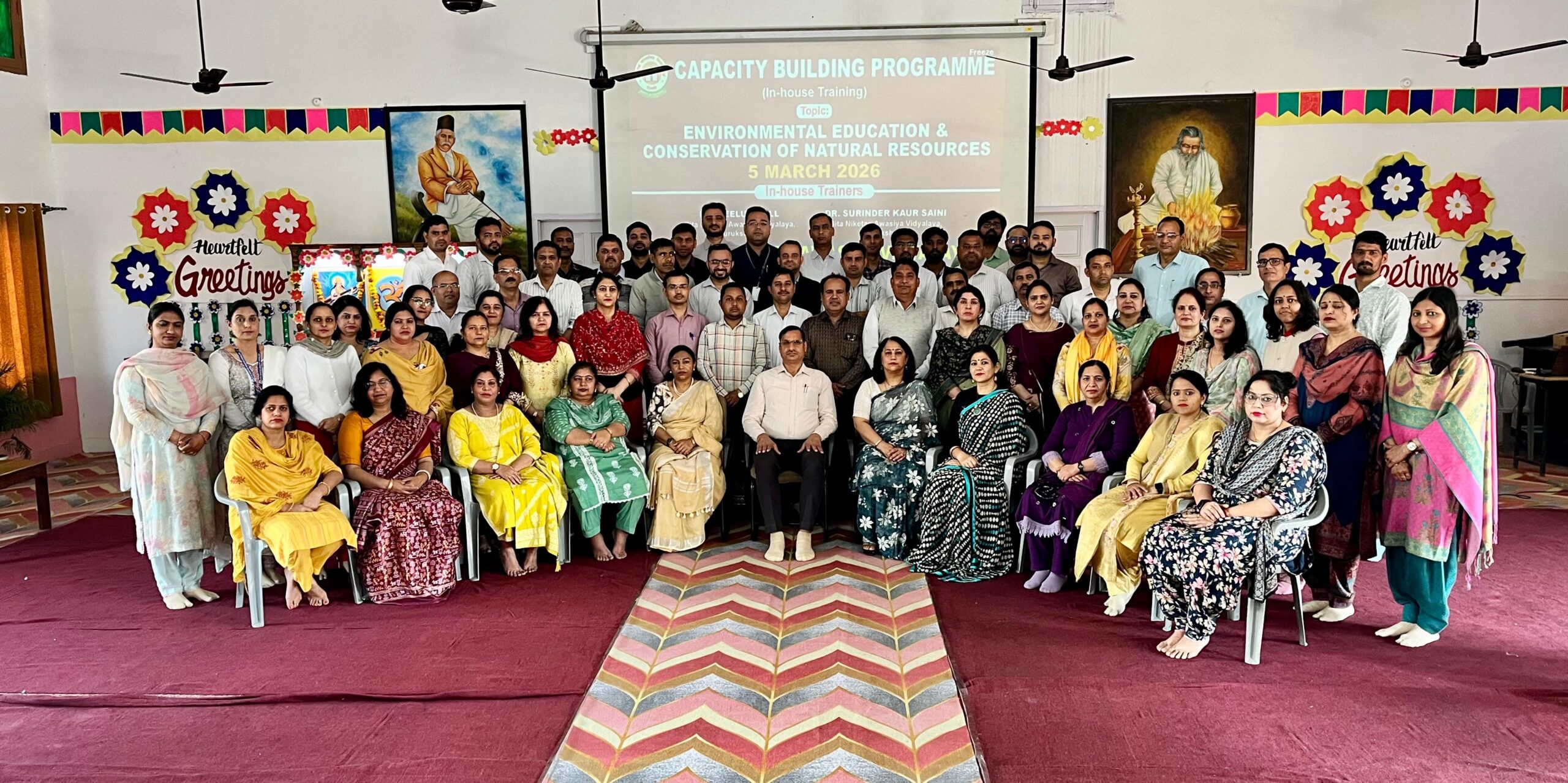 कुरुक्षेत्र । गीता निकेतन आवासीय विद्यालय, कुरुक्षेत्र में केंद्रीय माध्यमिक शिक्षा बोर्ड द्वारा निर्देशित क्षमता निर्माण कार्यक्रम के अंतर्गत “पर्यावरण शिक्षा एवं प्राकृतिक संसाधनों का संरक्षण” विषय पर एक दिवसीय कार्यशाला का सफल आयोजन किया गया। इस कार्यक्रम का उद्देश्य शिक्षकों को पर्यावरण संरक्षण, सतत विकास, जैव विविधता, जल संरक्षण तथा प्राकृतिक संसाधनों के विवेकपूर्ण उपयोग के प्रति जागरूक करना रहा,ताकि वे विद्यार्थियों में पर्यावरणीय चेतना विकसित कर सकें।कार्यक्रम का शुभारंभ दीप प्रज्वलन एवं माँ सरस्वती की वंदना के साथ हुआ। इस अवसर विषय विशेषज्ञ के रूप में डॉ॰ नीलू ढल एवं डाॅ॰ सुरेंद्र कौर सैनी उपस्थित रहीं। सर्वप्रथम डॉ॰ नीलू ढल जी ने पर्यावरण शिक्षा के महत्त्व, जलवायु परिवर्तन की चुनौतियों, जल एवं ऊर्जा संरक्षण, अपशिष्ट प्रबंधन तथा विद्यालय स्तर पर अपनाई जा सकने वाली व्यावहारिक गतिविधियों पर विस्तार से प्रकाश डाला। उन्होंने उदाहरणों एवं समूह-चर्चा के माध्यम से समझाया कि छोटी-छोटी आदतें—जैसे जल की बचत, प्लास्टिक का सीमित उपयोग एवं वृक्षारोपण—भविष्य में बड़े सकारात्मक परिवर्तन ला सकती हैं।तत्पश्चात् डॉ॰सुरेंद्र कौर सैनी जी ने 6Rs सिद्धांत(Reduce,Reuse,Recycle,Recover,Redesign,Remanufacture) और AQI (Air quality index) की अवधारणा से अवगत कराया। प्रश्नोत्तर सत्र में शिक्षकों ने उत्साहपूर्वक भाग लिया तथा अपनी जिज्ञासाओं का समाधान प्राप्त किया।कार्यक्रम के अंत में विद्यालय के प्राचार्य श्री नारायण सिंह जी ने मुख्य वक्ताओं का आभार व्यक्त करते हुए कहा कि वर्तमान समय में पर्यावरण संरक्षण प्रत्येक नागरिक का नैतिक दायित्व है। एक शिक्षक समाज का पथ-प्रदर्शक होता है, अतः उसका पर्यावरण के प्रति सजग होना अत्यंत आवश्यक है। उन्होंने सभी शिक्षकों से विद्यार्थियों में प्रकृति-प्रेम तथा संसाधनों के संरक्षण की भावना विकसित करने का आह्वान किया। शांति मंत्र के साथ कार्यक्रम संपन्न हुआ।